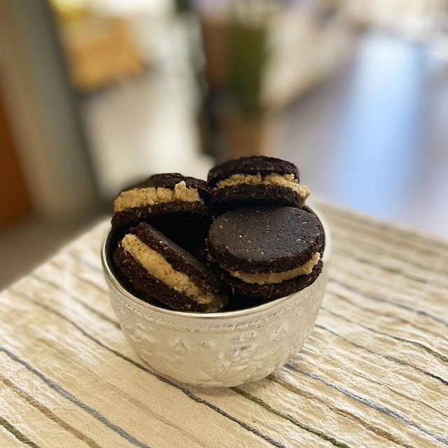 - Para el relleno procesar las castañas ya remojadas y sin el agua y agregar 2 sobres de Dulkré Clásico, 1 cda de aceite de coco neutro,1 cda de leche vegetal, 1 cdita de extracto de vainilla, hasta generar una pasta.⠀